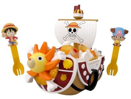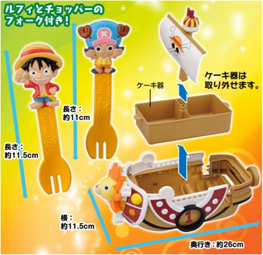 ナイフが金属製で、付属のフィギュアも出来がよく期待していたのですが、こちらのサニー号ケーキは子供向けに作られた商品のようですね^^;フォークはプラスチック(PS; ポリスチレン)なことしかり、デザインしかり、ケーキの味しかりです。。