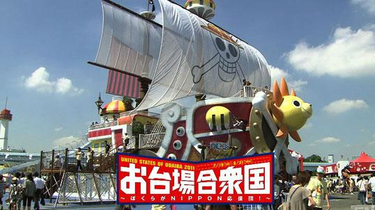 アスレチック あつまれサウザンド・サニー号に!」と題して、全長23mの実物大サニー号が登場しました。滑り台などが取り付けられたアスレチック施設となっているそうです。