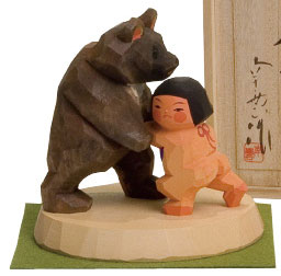 足柄(あしがら)山で育ち、そこで熊と相撲をとっていたそうです。そして相撲の四股踏みの時の掛け声が「
