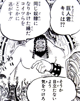 「礼は必ずする」って言ってましたね。”必ず”すると言っているのだから、必ずするのでしょう。おそらく覇気が使える巨人で、寝てさえいなければかなりの強さかもしれません・。・