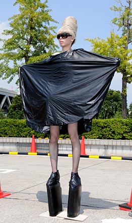 ガガさんのコスプレは、7月に放送されたトーク番組「徹子の部屋」(テレビ朝日系)に出演時の服装を再現。炎天下、黒い衣装に身を包んだコスプレーヤーは汗をかきながら直立不動のパフォーマンスを見せ、行き交う人の撮影依頼に応えていた。