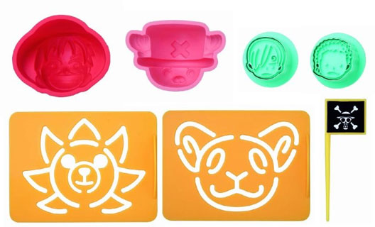 麦わら一味のシリコンカップや抜き型、海賊船のふりかけプレートなどお弁当キット10点付きで、これを使えばあっという間に海賊キャラ弁当が完成!