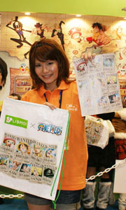 ブース来場先着で貰える、LISMOとONE PIECEの特製コラボビニールバッグ。