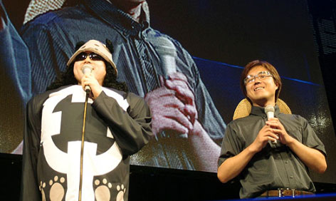 まずは今回の『ワンピース』ゲーム開発の中心人物である、コーエーテクモゲームスω‐Forceの鯉沼氏と、株式会社バンダイナムコゲームス中島氏の両プロデューサーがあいさつ。中島氏は気合いの入った“バーソロミュー・くま”の格好で登場した。
