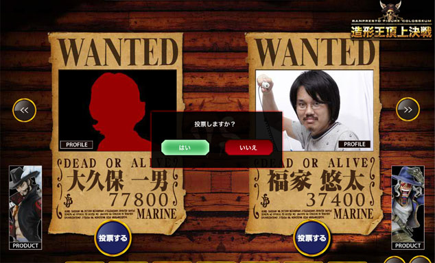 投票によって出場選手(造形師)の造形バウンティ(手配書の賞金額)が上がり、勝敗が決します。勝者はジャンプフェスタ2011で行われる決勝に進み、優勝を争います。