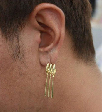 ピアスホールが1つしかなくても、3連ピアスをしているように見える優れものです。ゴールドでシンプルなデザインなので、普段着にも