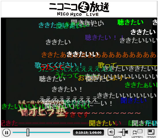 コメントによる負荷を避けるためか(←適当)、視聴者は500人ごとに”劇場をイメージした名前がついた”部屋に分けられる(←説明が意味不明ですねw視聴してみればわかります)。特に番組から断りがない限り、コメントは【アリーナ最前列】の500人のコメントが番組出演者に読まれている。アリーナ最前列以外で必死に質問コメントをしても出演者には見えていないので注意。