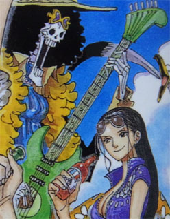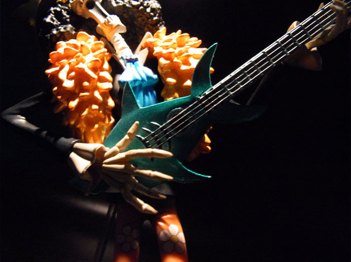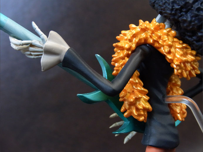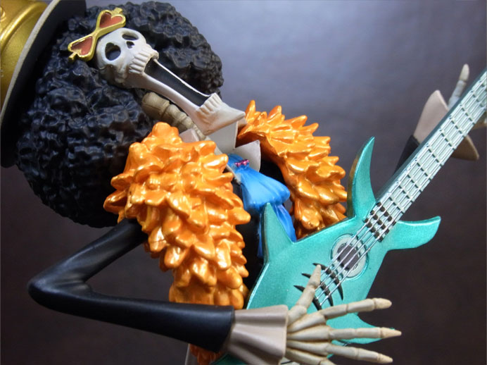細くて長身なシルエットをよく活かしたフィギュア造りがされているブルックです。かつ、ZERO製品版の劣化とは無縁のキャラクターであるため、原作に忠実なZERO新世界Ver.の造形の良さが塗装によって邪魔されること無く際立っています。それだけに、ギターの弦の数は残念でした・。・