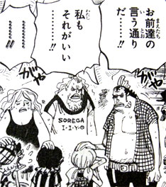 9人もいる一味に新たに入るためにはキャラ付けが重要です。ジンベエはルフィの扱いに手馴れており、一味を引っ張る兄貴的な立場である一方、コミカルなリアクションが与えられ、ボケもこなして一味の中に既に溶け込んでいるため、この点は問題ありません。