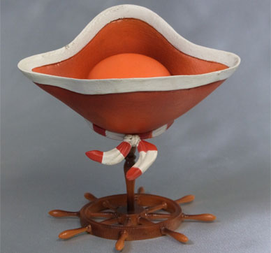 舵輪がモチーフの帽子掛けオブジェ。