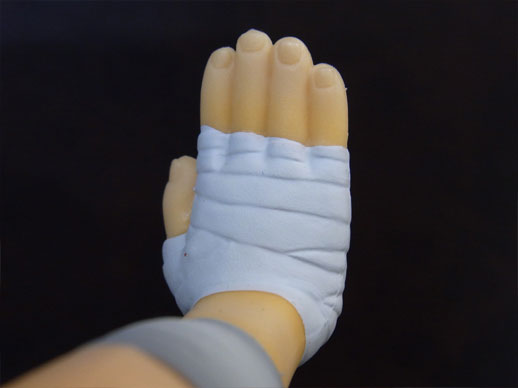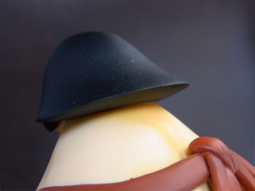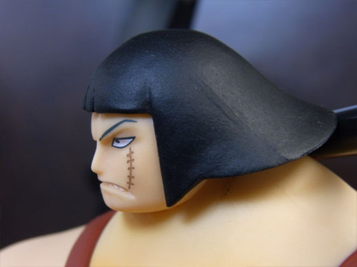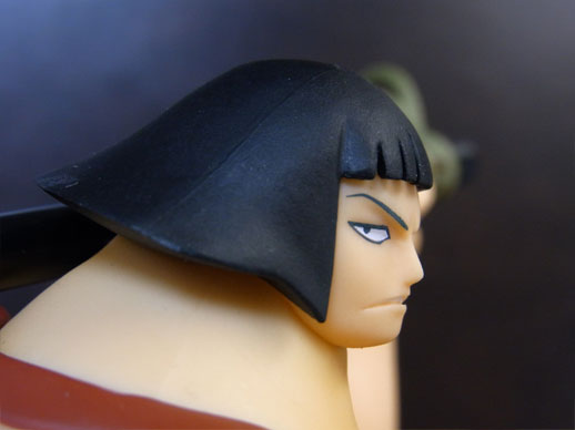 未塗装樹脂に顔パーツのプリントです。つや消しはしっかりしておりテカりはありません。戦桃丸は五月人形のような淡白な顔をしているためか、好ましい仕様ではないですが、今回に限っては印象は悪くないです。