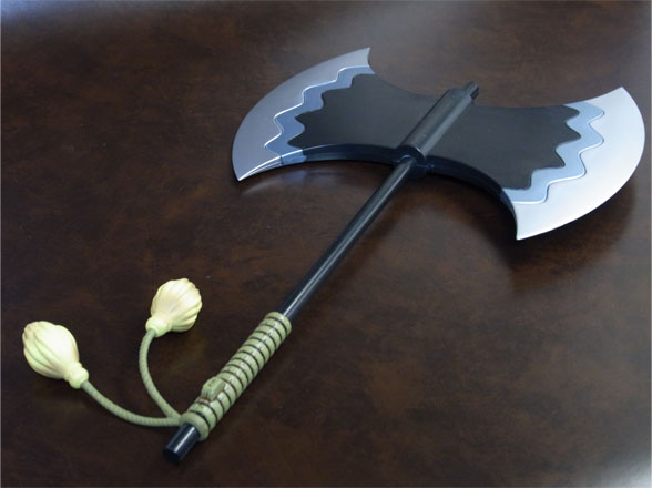 鉞は全長約25センチ。左手のダボ穴にダボ接着で固定します。