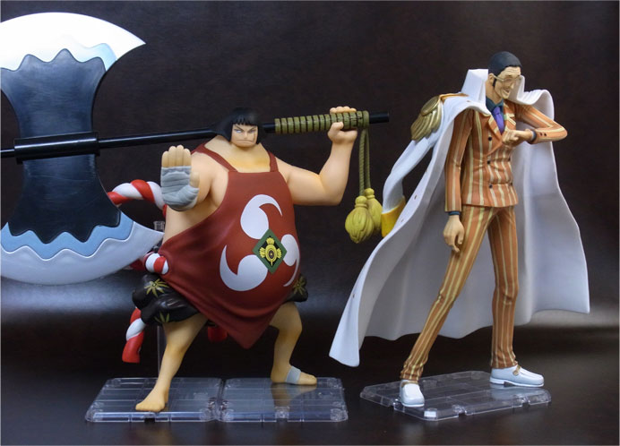 戦桃丸は推定身長は2メートル強で、スタイリングやZEROのルフィとスケールが同じになっています。黄猿は推定身長約3メートルで、ZERO黄猿に対してはスケールがやや大きいです。POP黄猿がちょうどかも?