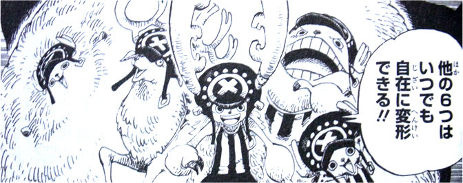 他の6つはいつでも自在に変形できる」というチョッパーの新たな7つの変形点は、636話時点で以下の通り予想することが出来ました。