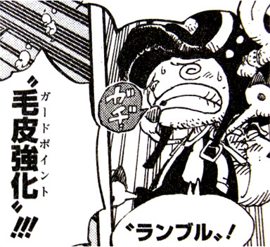 「他の6つはいつでも自在に変形できる」というセリフを言うコマ(トップ画像)に描かれた【脚力強化】(獣型)、【頭脳強化】(人獣型)、【角強化】、【毛皮強化】、【柔力強化】の5つに加え、636時点では未登場だった【重量強化】(人型)は通常の変形点であるため当然ランブルは必要ないと考えられました。