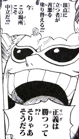 「頂点に立つ者が善悪を塗り替える!!!今 この場所こそ中立だ!!!正義は勝つって!?