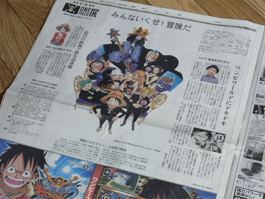 朝日新聞朝刊にワンピース展の特集が掲載されていました。