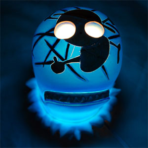 その造形・彩色もさることながら、本体内部の電球が点灯すると、あたり一面