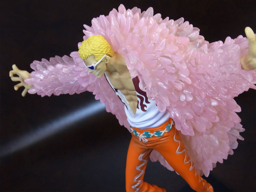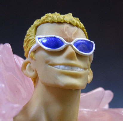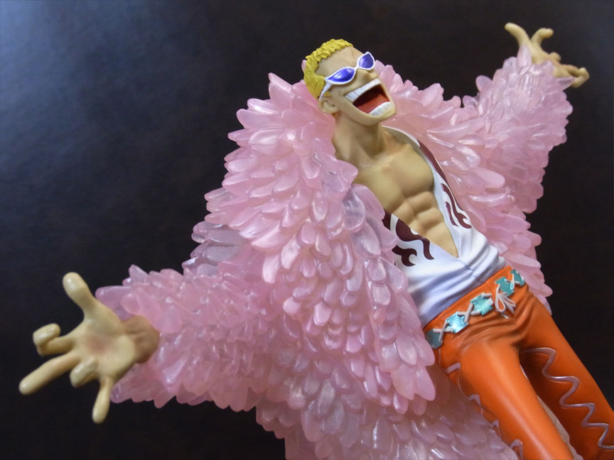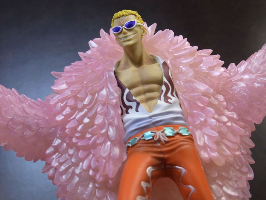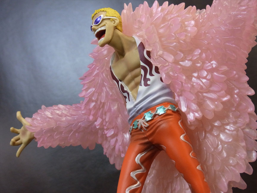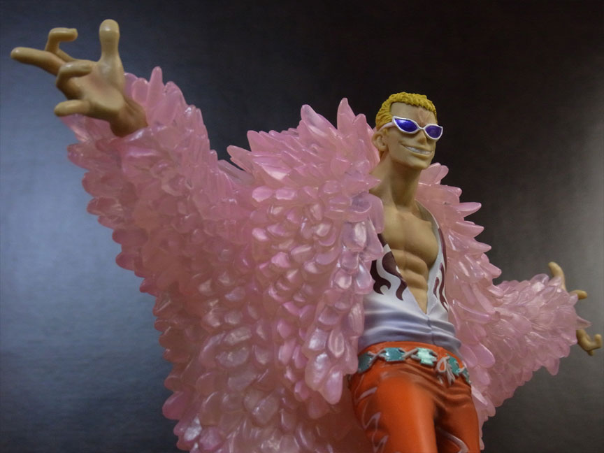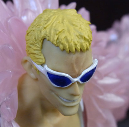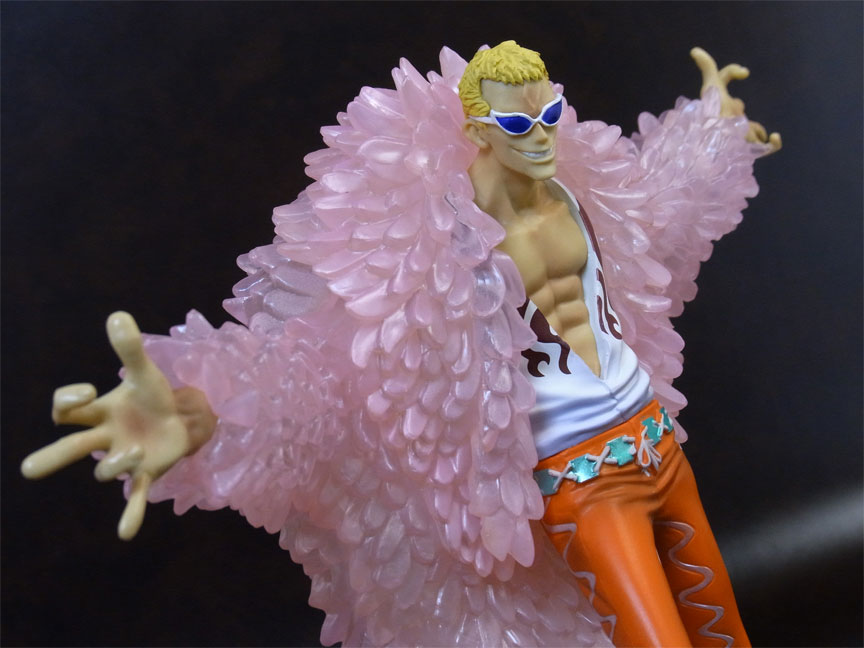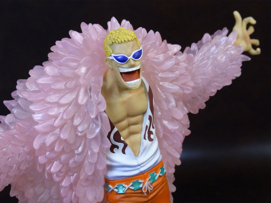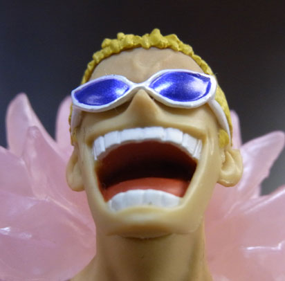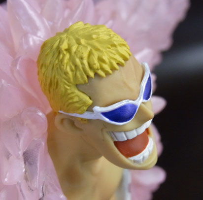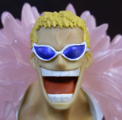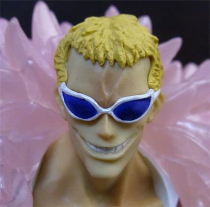 ドフラミンゴらしい高笑いの表情。差し換えパーツのため首にパーティションラインが入っているのが少し残念。