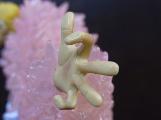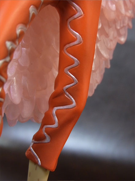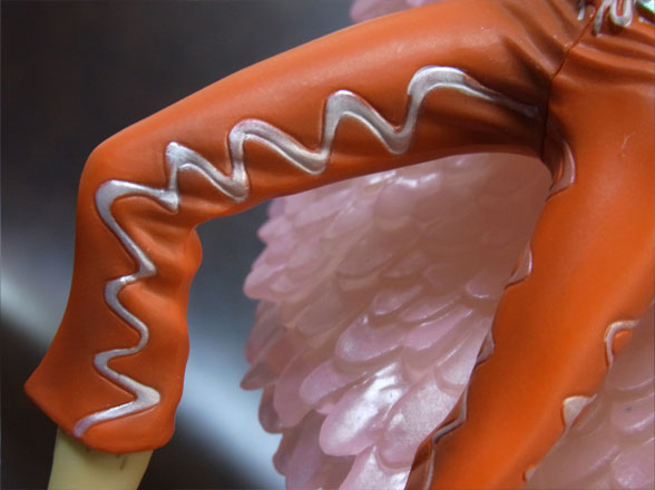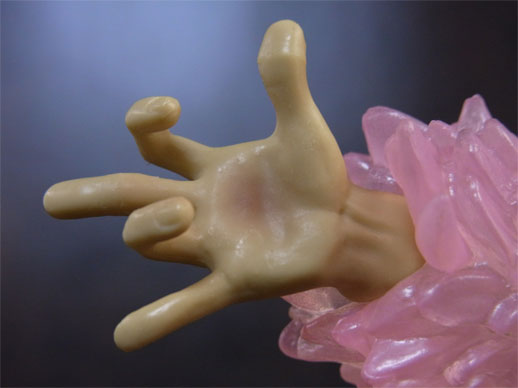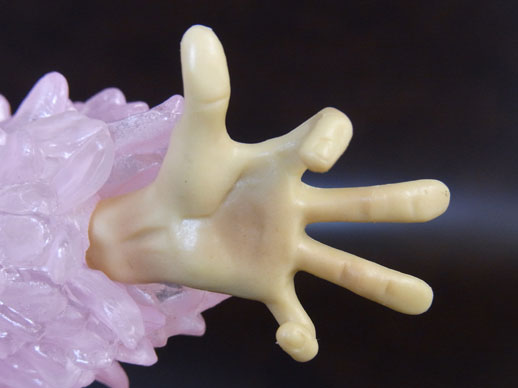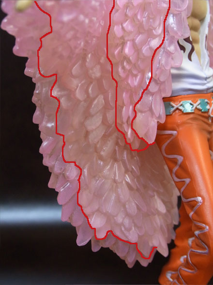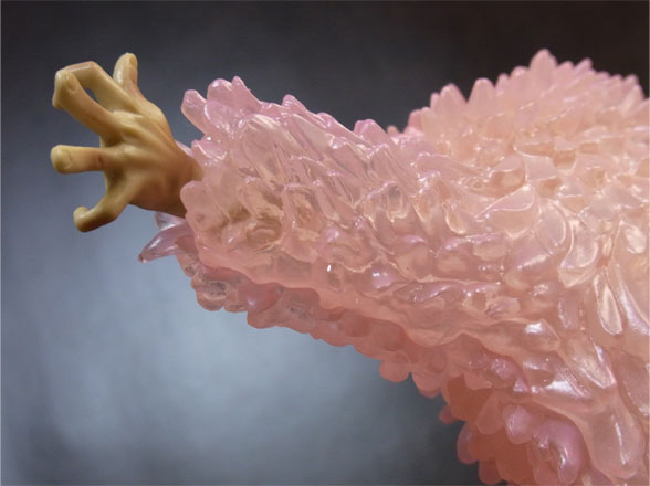 コートはクリアパーツ(薄いピンク色?)になっており、所々ピンク色がのってます。使用されているのは一色だけですが、濃淡で単調にならず、光の反射も相まって複雑な色合いになっています。この辺が写真でおそらくうまく伝わらないと思います。