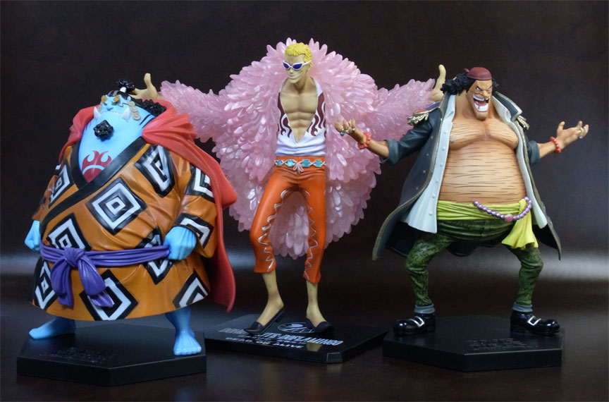 DX王下七武海のジンベエと黒ひげと一緒に並べて、身長3メートルトリオです。比べるのはあまりに痛々しくて写真に撮りませんでしたがDX王下七武海のドフラミンゴは並べると無惨です(笑)