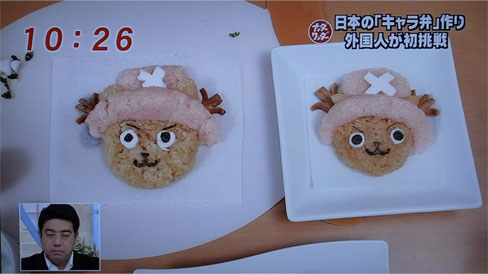 右の人がチョッパーのキャラ弁作りに挑戦しています。真ん中はキャラ弁先生。(佐野アナどうしたw)