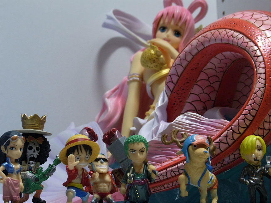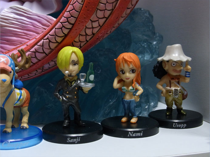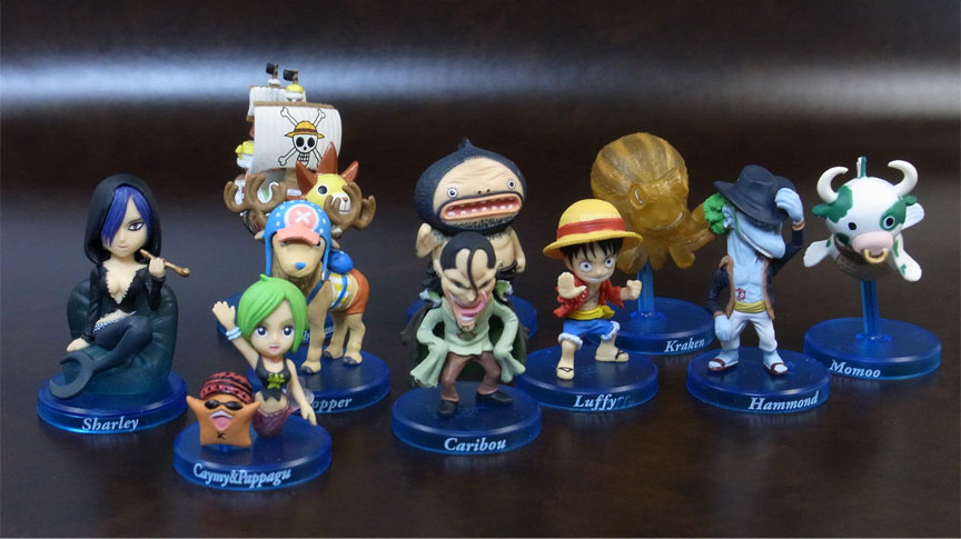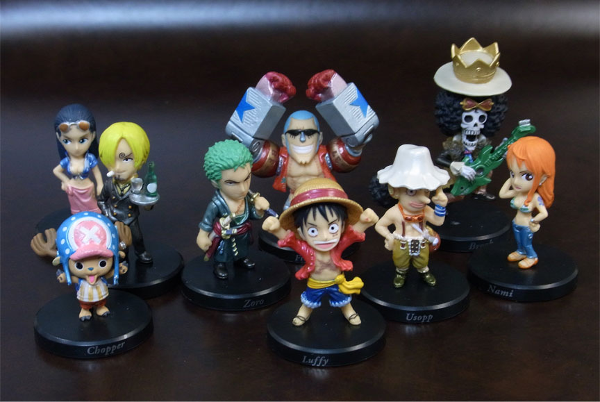 「ワンピースコレクション~九人の海賊~」の麦わらの一味9人の衣装をパールカラーにリペイントしたもの。台座がスペシャル仕様で黒かったのが誤算ですw