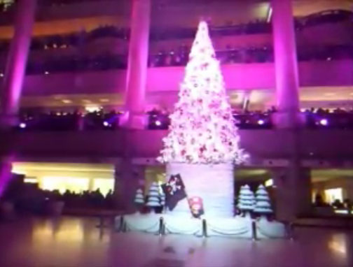 オリジナルクリスマスツリーの展示物がライトアップされ、麦わらの一味声優陣の特別音声とBGMが流れ、特別な雰囲気が演出されています。