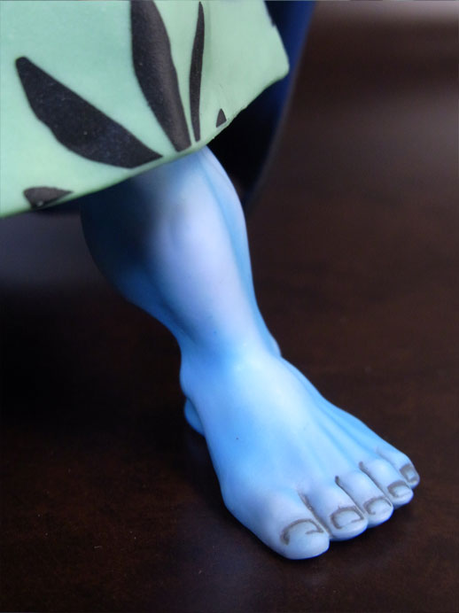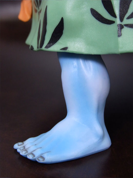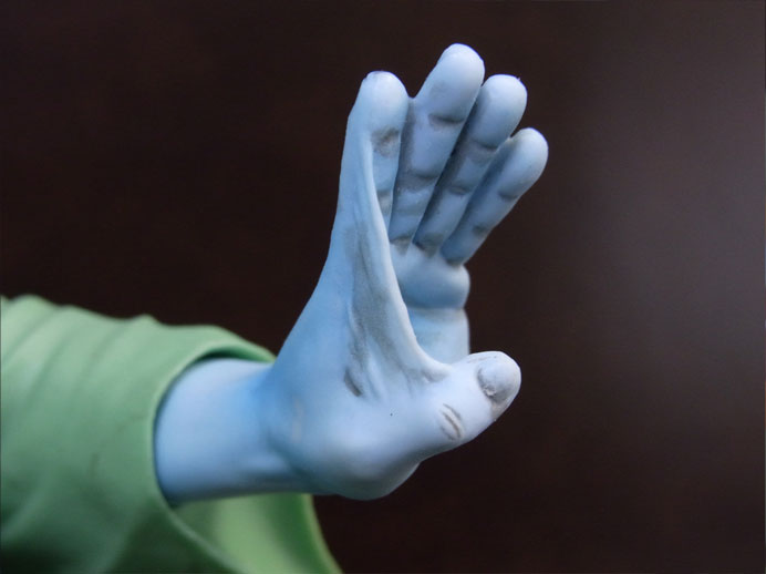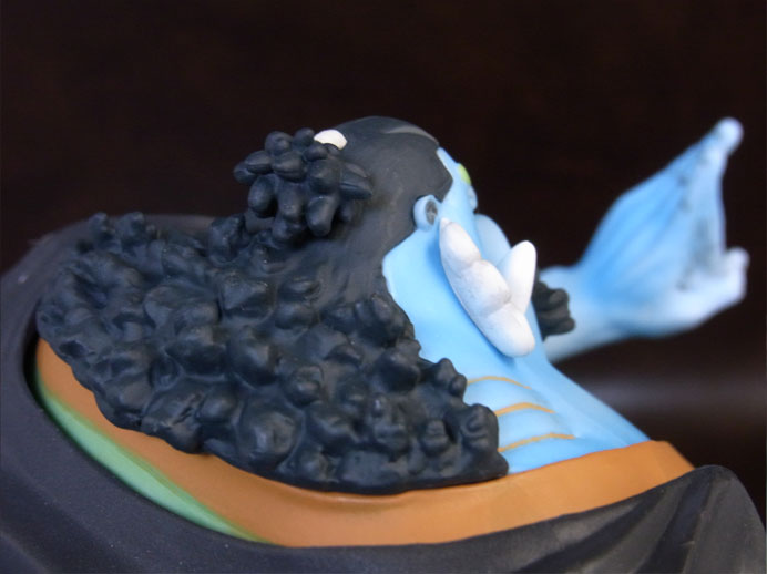 頭部は、髪の毛とアゴ髭が別パーツの黒い樹脂になっている他は、薄い水色の樹脂でつくられ、肌に水色の塗装が施されています。