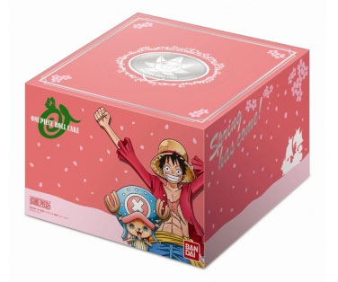 春をイメージしたピンクのいちごクリームを巻き込んだロールケーキ(約16cm)に付属の顔パーツ、帆&マストパーツのオーナメントをさすと、サウザンドサニー号が完成!
