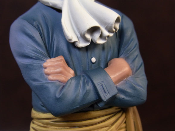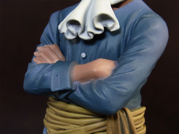 服の皺は面が広くて角ばっており、硬い印象を受けます。フィギュアなので、実際硬いわけですがw