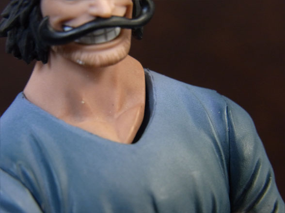 未塗装、アゴ髭はプリントです。褐色の樹脂が衣装の色調と合っているため、あまり気になりませんが、かなり