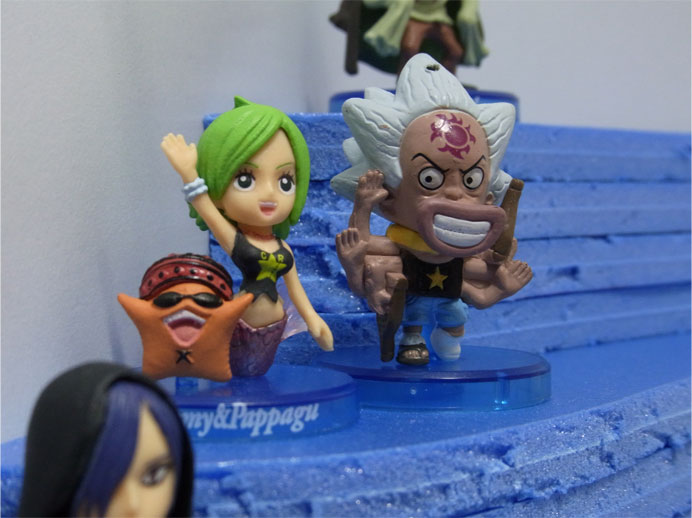 魚人島のディスプレイでは通常サイズのキャラクターはワンコレをベースに集める予定ですが、ワンコレ魚人島編(海底の楽園)のはっちゃんはなぜか無傷でぴんぴんとしていて違和感があっため、この負傷したはっちゃんをゲットした次第です。