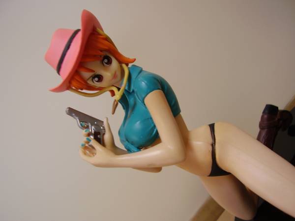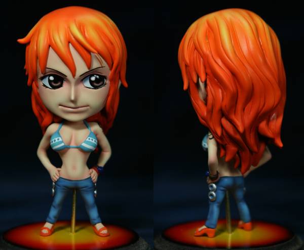 ナミの白水着は改造フィギュアでよくある「挿げ替え」(既製品の頭を他の既製品のボディに付け替える)です。ナミ、ロビン、ハンコックの挿げ替えフィギュアが特に多いです。