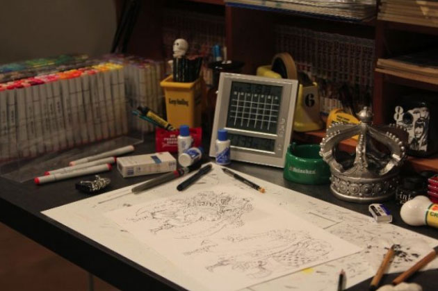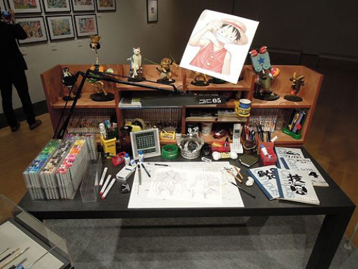 / ( ⌒) (● )\ 尾田っちの仕事机が再現されているおw