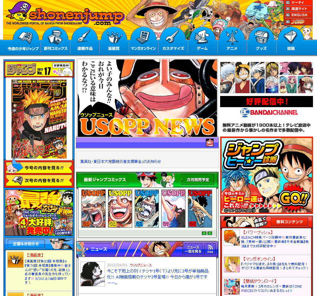4月1日の週刊少年ジャンプ公式サイトはこんな↓感じになってます。