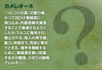 カメレオーネ」はその能力を使って白ひげ海賊団の元ナワバリであるサンバ島を、自分のナワバリにすることを目論んでいた。