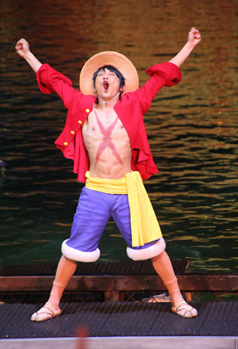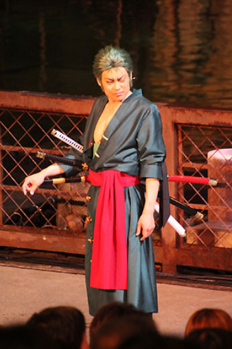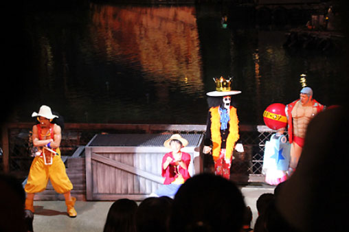 ワンピ声優陣の録音音声に合わせて役者たちが動く、言わば豪華なアクションヒーローショーです。ストーリーはショーオリジナル。セットを活かし、特殊効果を駆使したアクションが展開します。