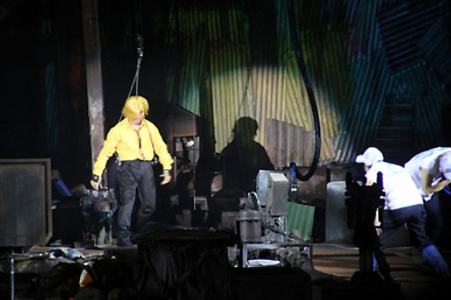↓5日に報道陣を交えて行われた先行公演の様子(画像:毎日新聞デジタル)