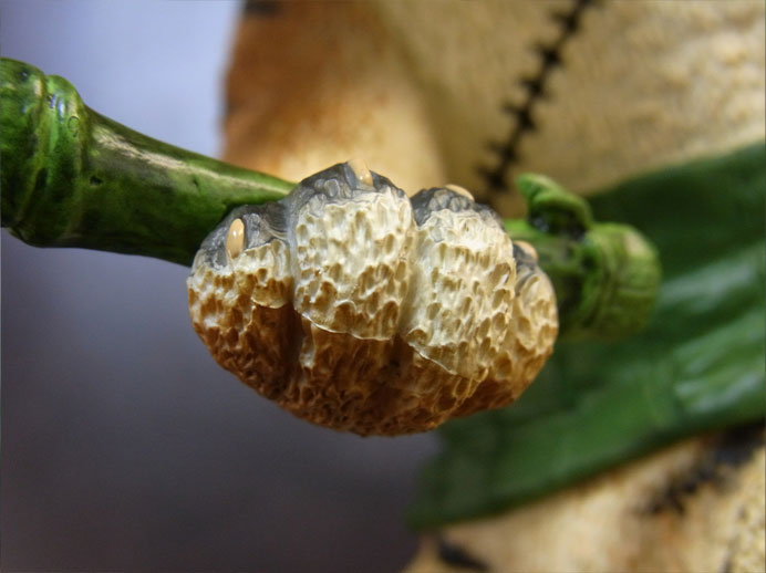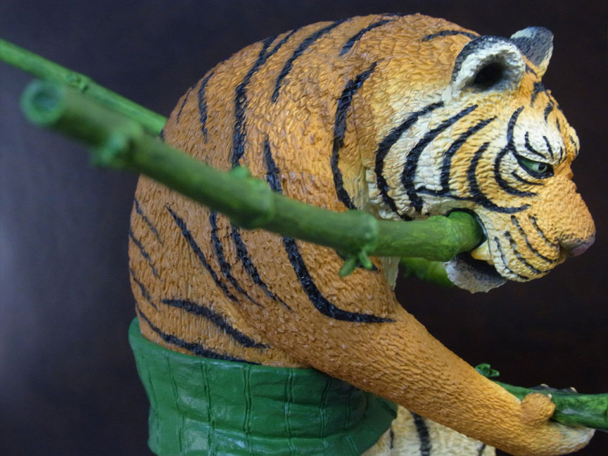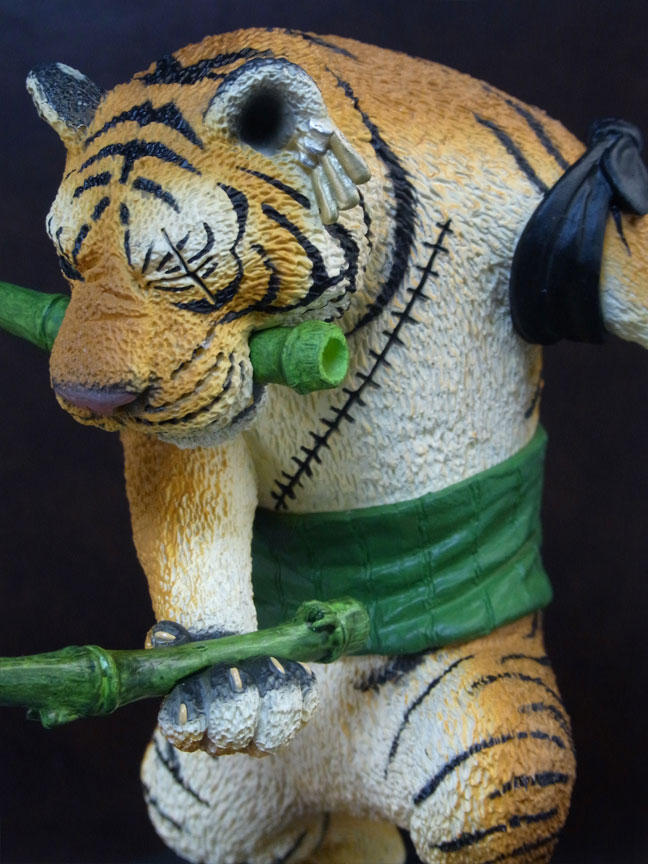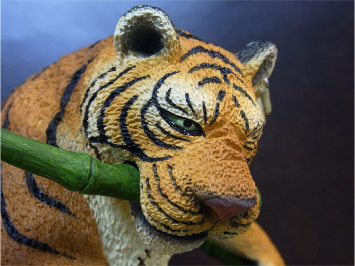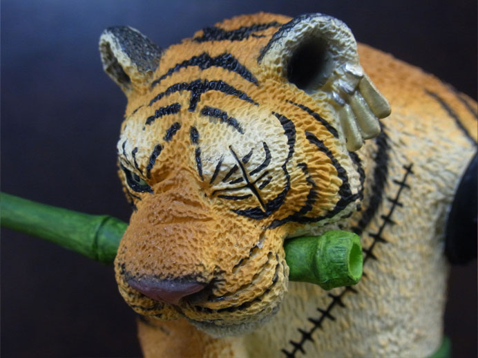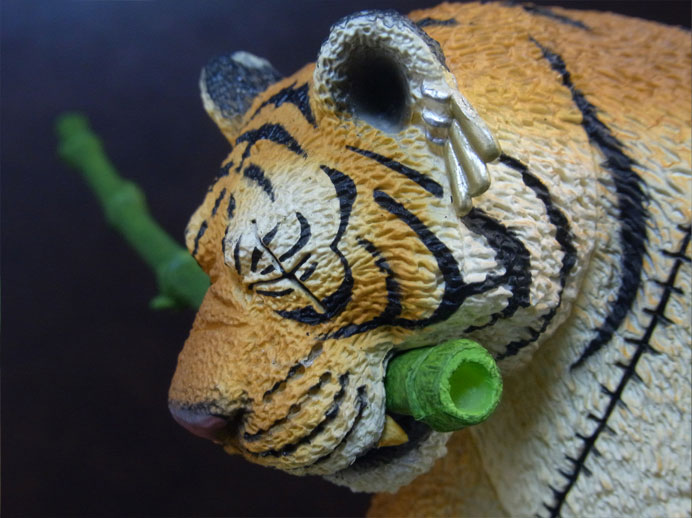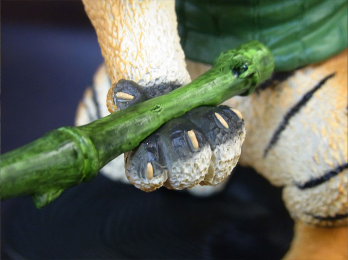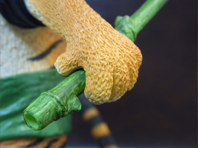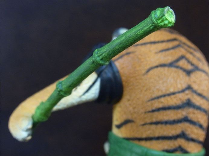 竹はダボがついており、手と口にあるダボ穴と接着する仕様です。竹の塗装は筋張った質感は表現されていますが、見方によっては雑な印象です。