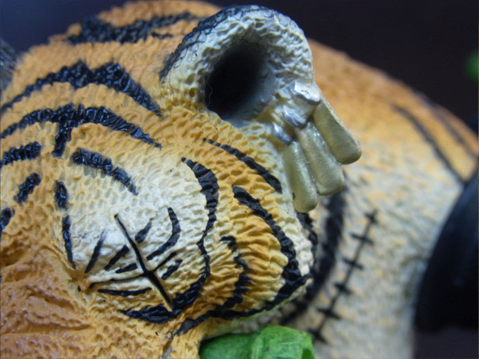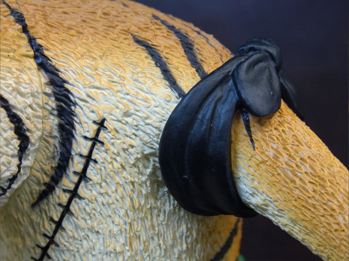 雰囲気にこだわったとのこと。こだわったという目はまぶたの奥に眼球が造形されており、塗装の照り(笑)も相まって鋭い眼光が表現されています。塗装の質感はちょうど眼球のぬるっとした質感に似ており、いい感じです。