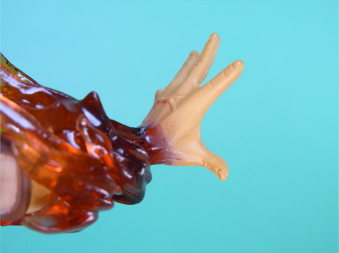塗り肌の左手は樹脂肌ベースのボディと質感も色も異なり、やや違和感があります。ボディとの境目をなくすことでロギア系の再現になっているわけですが、見栄えがよくないので微妙な仕様です。
