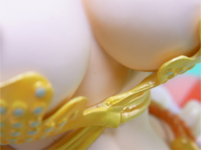 ブラの羽衣部分は別パーツになってます。元々、開封後に取り付けるパーツであることと、色調が分割の境界で異なるため、