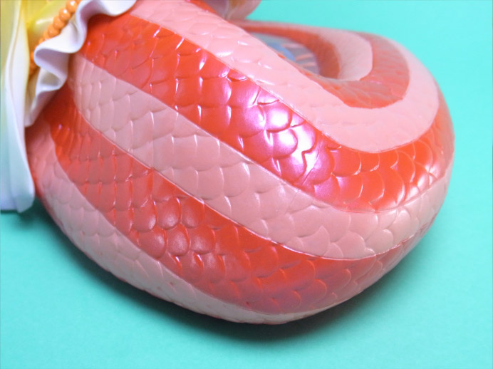 ブラや腰周りの装飾は原作に忠実です。お尻半見えの後ろ同様、前面も鱗の位置がかなりローライズ(?)です。