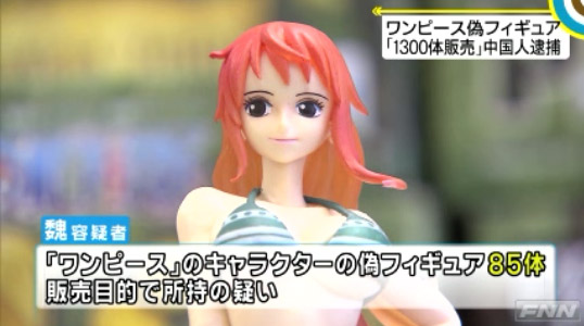 著作権法違反の疑いで逮捕された中国人の魏忠強容疑者(21)は、人気アニメ「ワンピース」のキャラクター「ナミ」などの偽のフィギュア85体を、自宅に所持していた疑いが持たれている。