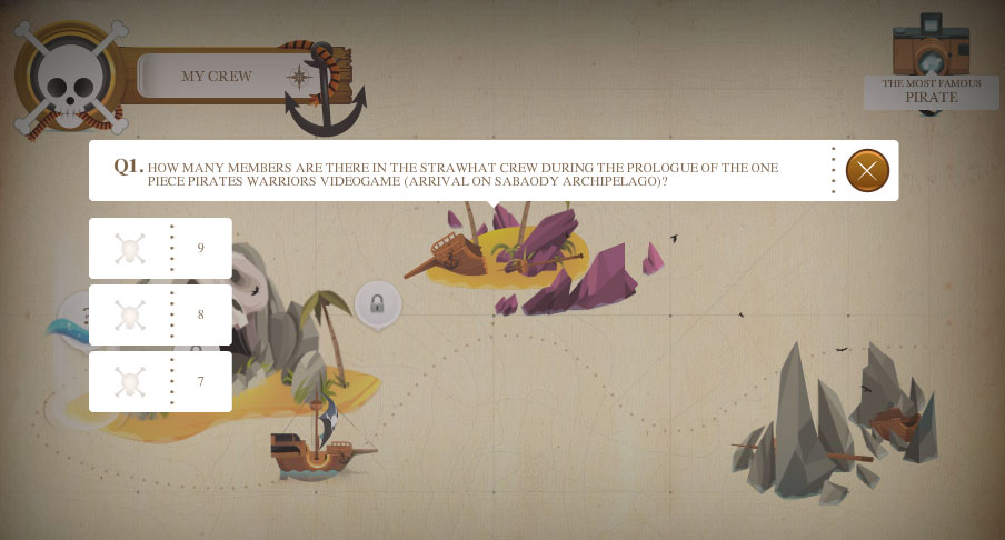 Q1. How many members are there in the Strawhat Crew during the prologue of the ONE PIECE PIRATES WARRIORS videogame (Arrival on Sabaody Archipelago)? Prize: 青キジ壁紙