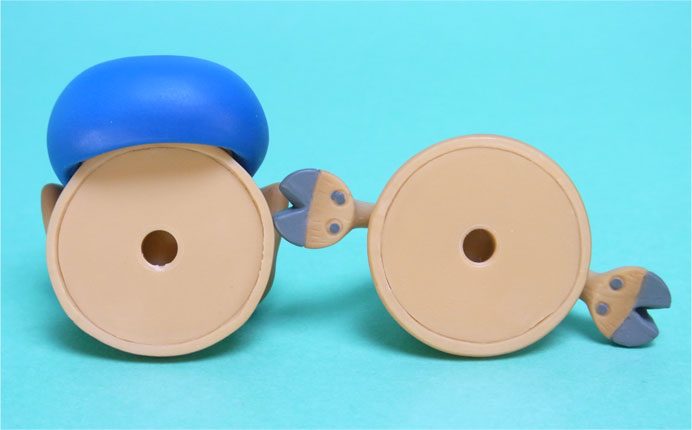 角と耳は着脱式になっており、帽子から頭に付け替えることが可能です。角がついた差し替え頭部を用意するよりは合理的という理由で生まれたギミックと思われますが、可笑しなところで原作に忠実になっていますw