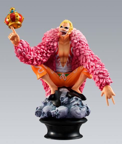 「王下七武海」の新旧メンバーをラインナップ。コレクションアイテムとして究極のクオリティを追求した造形と色彩で、各キャラクターの持つ個性と作品の世界観を最大限に演出。実際のチェスのルールに準拠したキングからポーンまでの役をそれぞれに配置しており台座は黒と白の2種類があります。作品ファンのみならずコレクショントイユーザーへも魅力ある商品となっています。