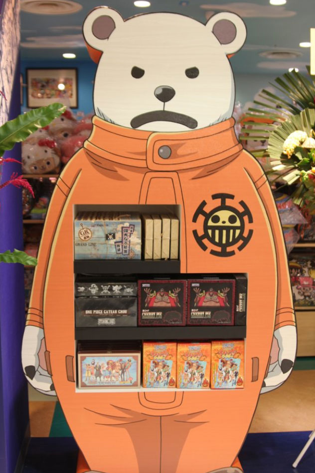 ショップの入り口にはルフィとチョッパーの等身大(より一回り大きめ)フィギュアがお出迎えだお