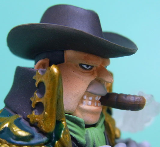 ベッジは体が城のようになっている不明能力者。流石に、お腹の城門の鎖や胸の砲門の造形はありませんが、せめて開いた城門の表側の塗装はして欲しかったところです。まぁ、普通に飾っていれば見える箇所ではないのですけどね・。・ また、砲弾の煙はクリアパーツにした方が見栄えが良かったかもしれません。